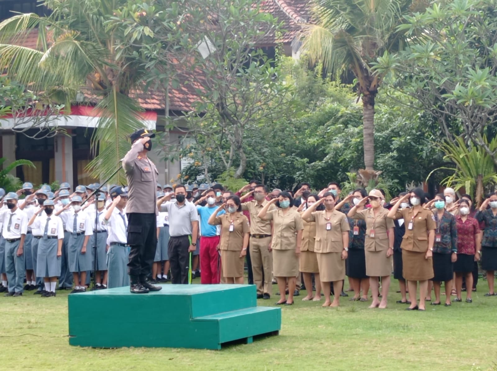 Selain mengelar sosialisasi, Sujana juga mendapat kesempatan sebagai Inspektur dalam Upacara Bendera yang diikuti para guru dan siswa SMA 3 Denpasar.
