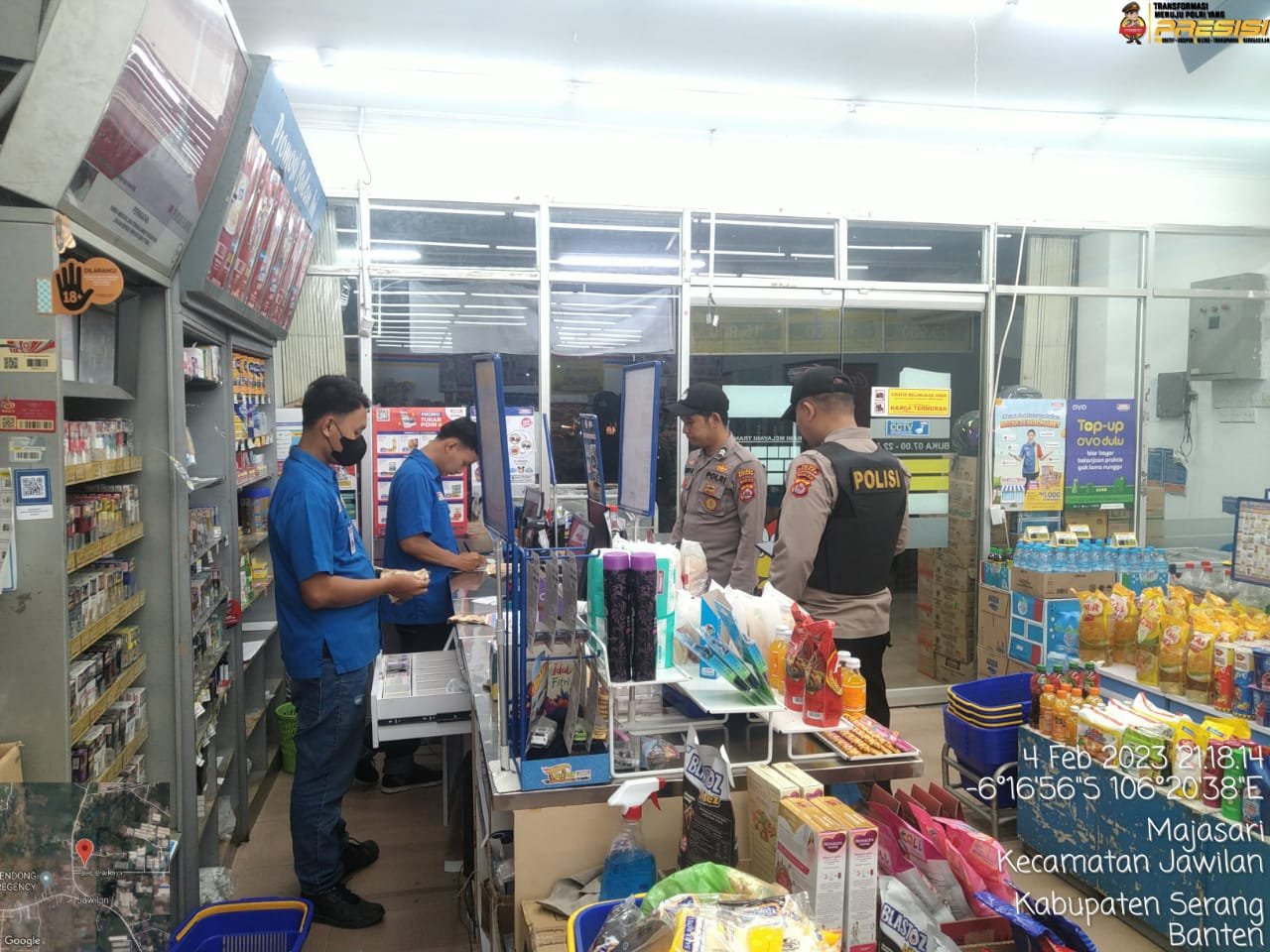 Polsek Jawilan Polres Serang melaksanakan kegiatan rutin yang ditingkatkan (KRYD) dengan melakukan patroli dialogis di Indomaret, SPBU Harendong, dan kampung pasar harendong desa Jawilan Kecamatan Jawilan kabupaten Serang pukul 21.30 Wib.