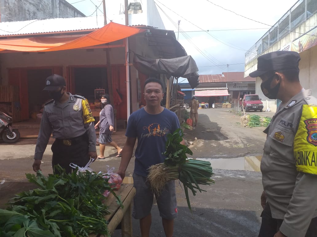 Kapolsek Langowan AKP Dartha melalui personel Aiptu Jopi Kaparang, Aipda Purura dan Bripka Mugiyono menyampaikan pentingnya mentaati Prokes agar terhindar dari Virus Corona.
