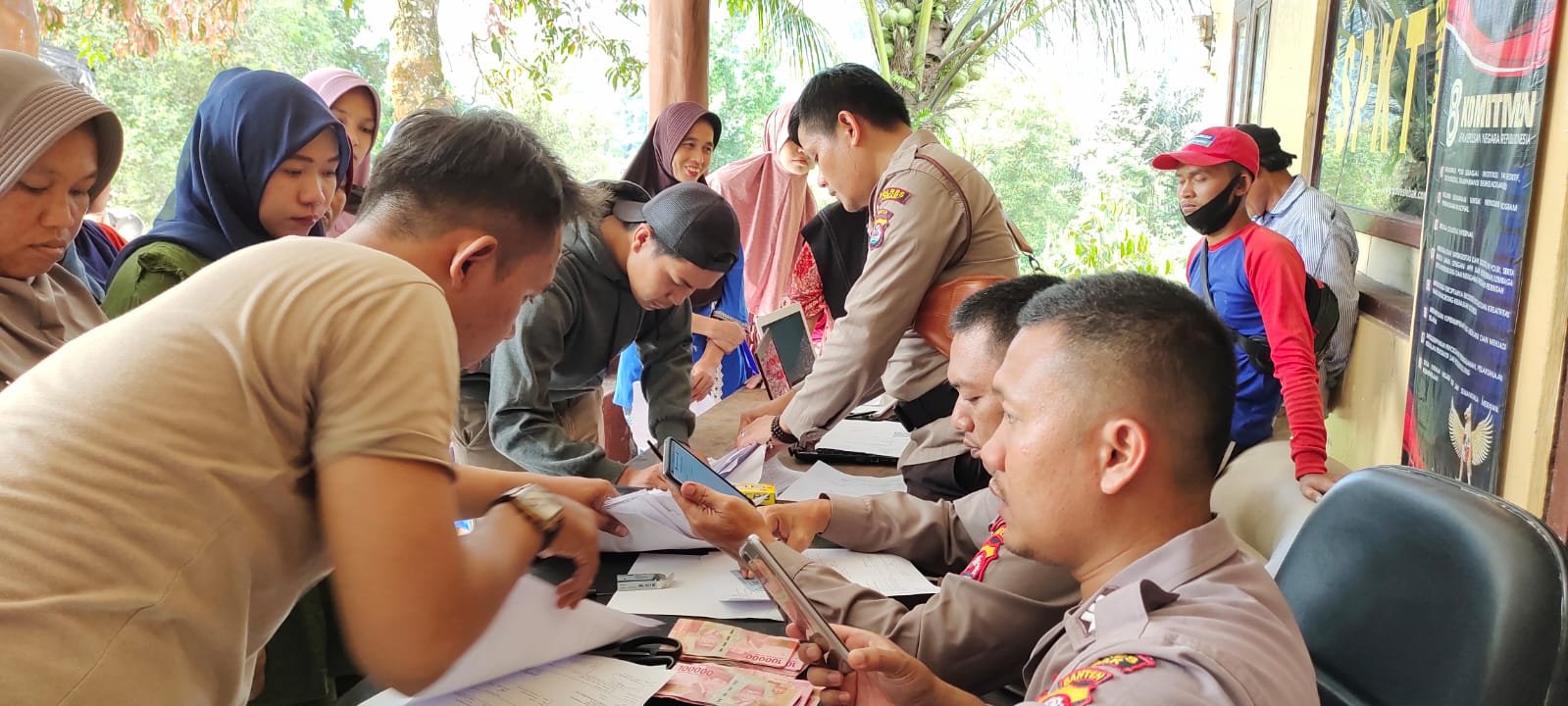 “Benar dalam hal ini Polsek Sobang Melaksanakan Pembagian Bantuan di Mako Polsek Sobang, kegiatan pembagian ini dilaksanakan selama dua hari. ucap Kapolsek Sobang.