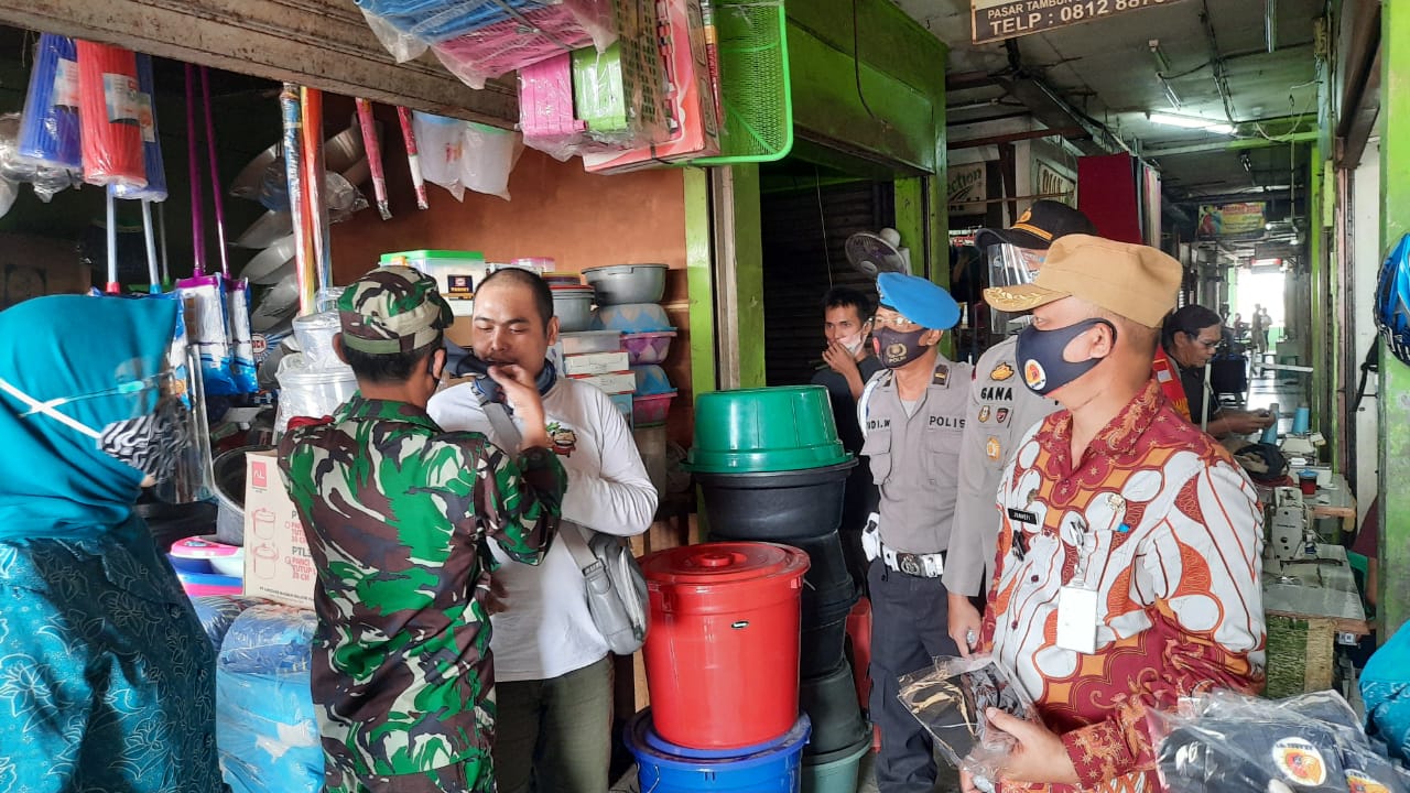 Petugas juga menghimbau kepada pedagang dan pembeli yang pasar tambun
