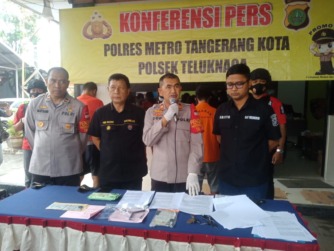 NASIONALXPOS.CO.ID, TANGERANG – Jajaran Polsek Teluknaga, Polres Metro Tangerang Kota. berhasil menangkap empat pelaku pencurian dengan pemberatan (curat), Hal itu dikatakan AKP Dodi Abdul Rohim S.Sos, MKRIM. Saat jumpa pers Dihalaman polsek Teluknaga. Jumat, (6/11/2020).