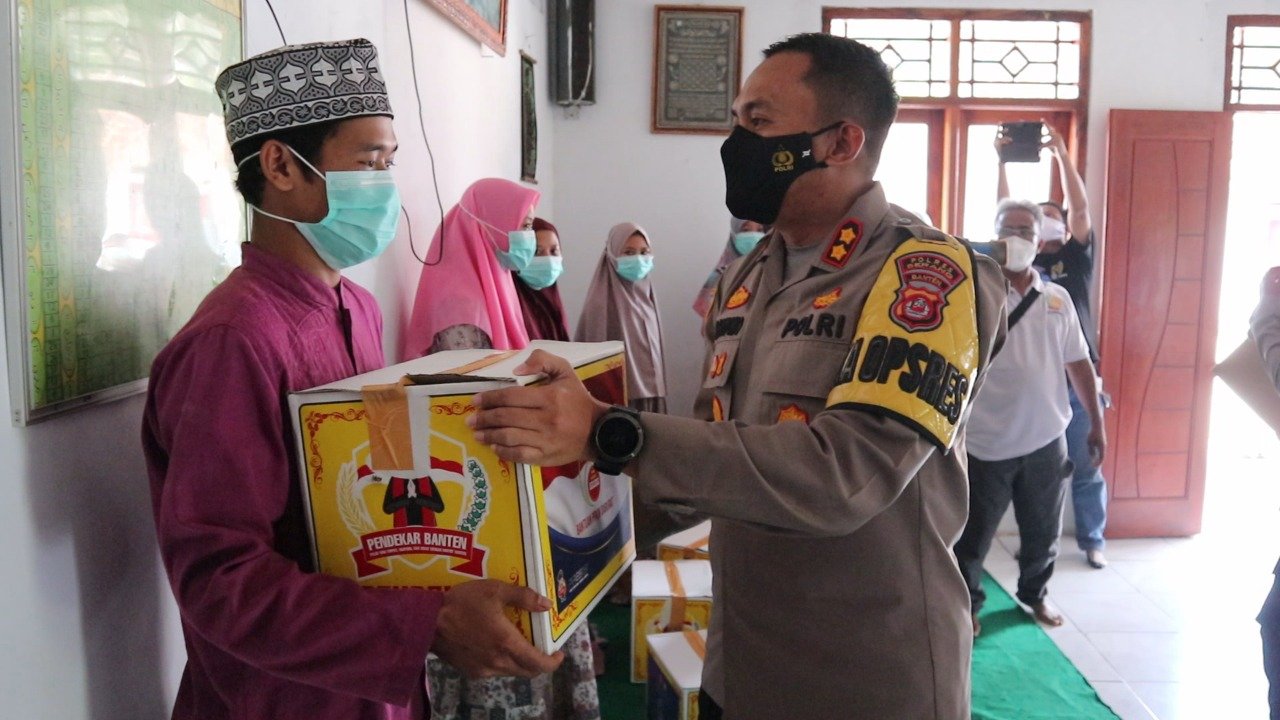 NASIONALXPOS.CO.ID, SERANG – Jajaran Polres Serang dipimpin lansung oleh Kapolres Serang AKBP Mariyono, melaksanakan pemberian bantuan sosial di Ponpes Tadibul Ahkam, Kampung Jambu, RT.09/02, Desa Bojong Pandan Kecamatan Tunjung Teja, Kabupaten Serang, Selasa (27/7/2021).