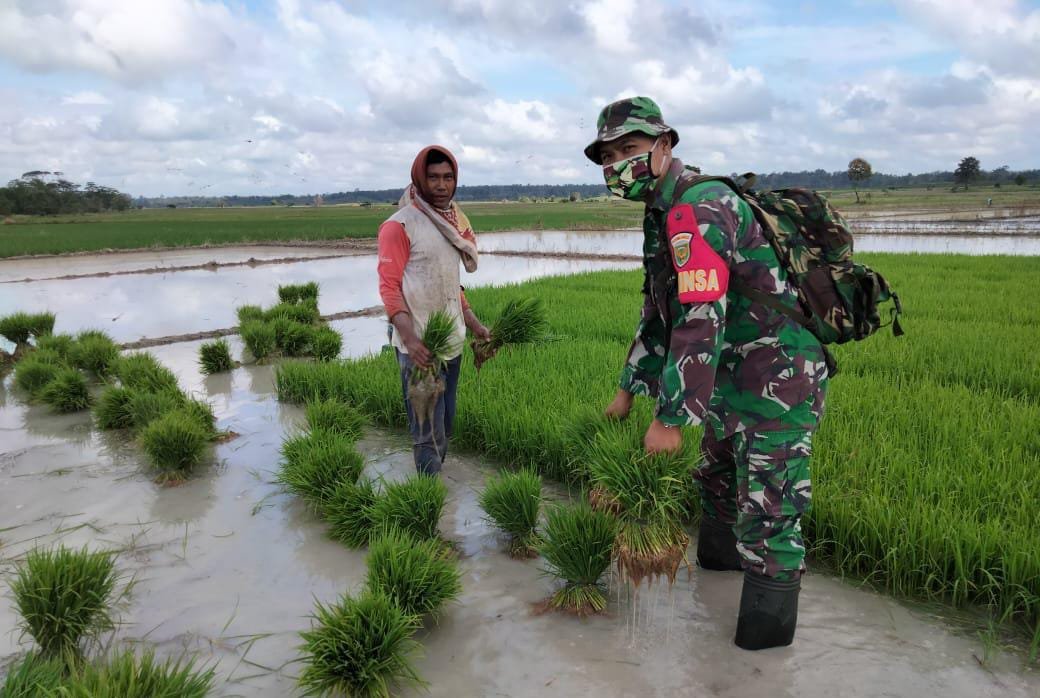 Dalam upaya mempercepat proses masa tanam padi serentak di wilayah, Babinsa melakukan pendampingan secara langsung kepada para petani, guna mencapai target swasembada pangan Nasional.