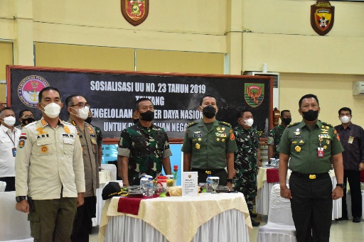 Mengingat pentingnya sosialisasi ini, Pangdam menghimbau kepada para peserta, agar mengikuti kegiatan ini dengan seksama, sehingga materi yang akan disampaikan dapat dimengerti dan dipahami untuk mendapatkan kesamaan pola pikir, pola sikap dan pola tindak dalam rangka menyikapi pelaksanaan Undang-Undang Nomor 23 Tahun 2019 tentang Pengelolaan Sumber Daya Nasional untuk Pertahanan Negara.