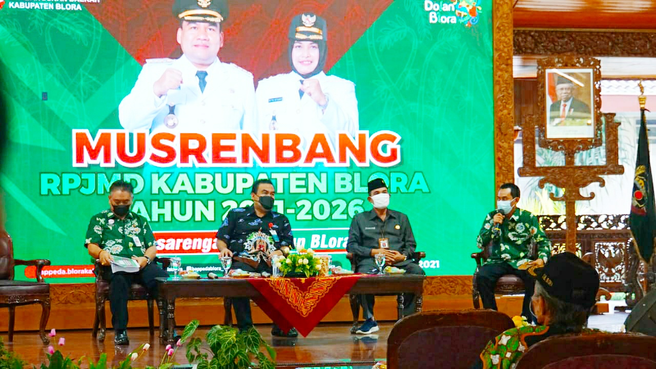 NASIONALXPOS.CO.ID, BLORA – Pemerintah Kabupaten (Pemkab) Blora laksanakan Musyawarah Perencanaan Pembangunan (Musrenbang) tentang Rancangan Pembangunan Jangka Menengah Daerah (RPJMD) tahun 2021-2026, di Pendopo Rumah Dinas Bupati, Jumat (18/6/2021).