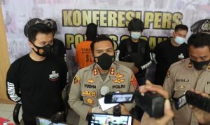 “DM diamanakan dirumahnya beserta barang bukti, narkoba cair jenis Liquid,” kata Kapolres Serang AKBP Yudha Satria, didampngi Kasat Narkoba Polres Serang Iptu Michael K Tendayu dan Kasie Humas Polres Serang, saat mengelar press release, Jum’at (24/9/2021).