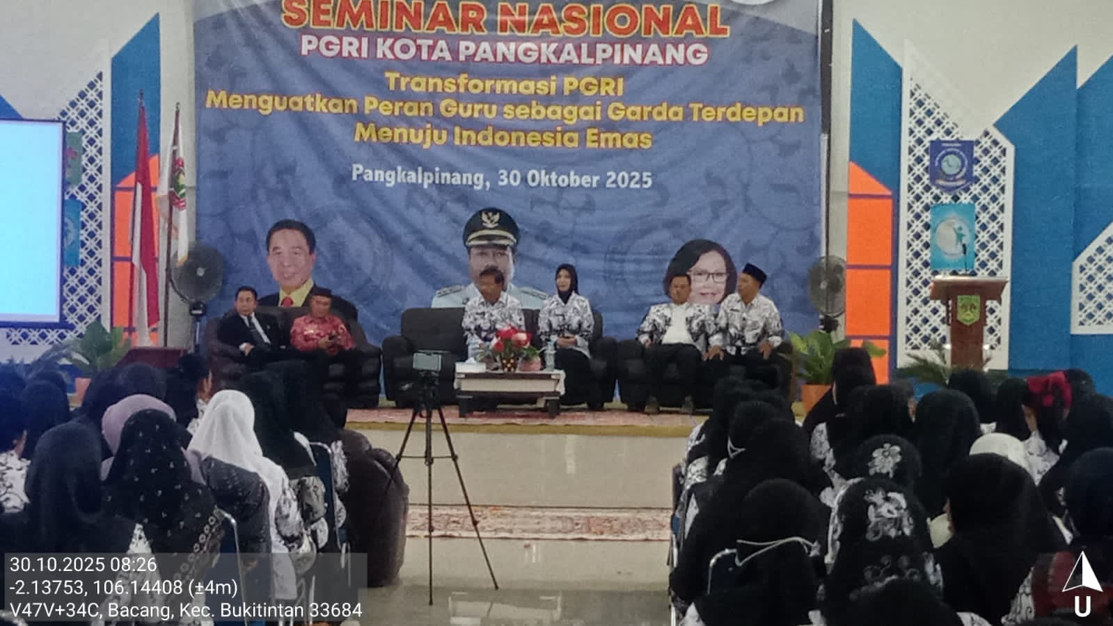NASIONALXPOS.CO.ID, PANGKALPINANG – Dalam rangka memperingati Hari Guru Nasional, Persatuan Guru Republik Indonesia (PGRI) Kota Pangkalpinang menggelar Seminar Nasional bertema “Transformasi PGRI Menguatkan Peran Guru Sebagai Garda Terdepan Menuju Indonesia Maju”, Kamis (30/10/2025), bertempat di Aula SMA Negeri 2 Pangkalpinang.