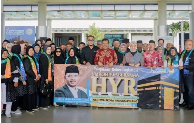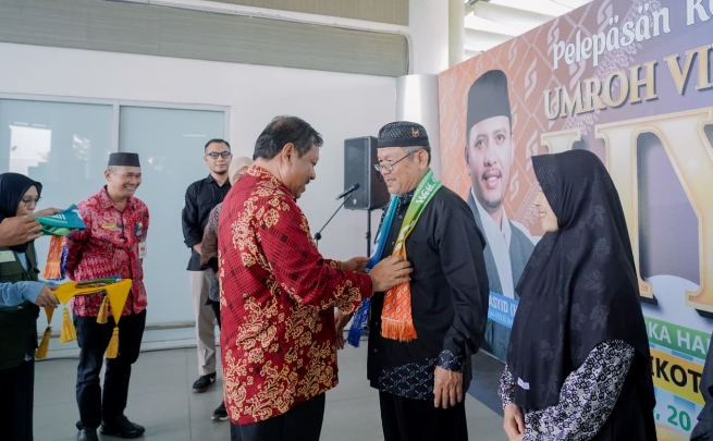 Wali Kota Pangkalpinang, Prof Saparudin (Prof Udin), secara resmi melepas keberangkatan 69 guru yang berangkat menunaikan ibadah umrah VIP.