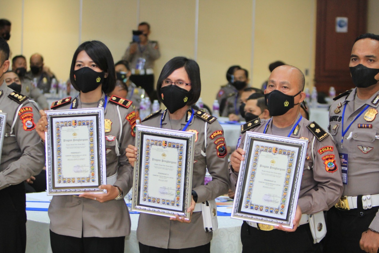 Penerimaan penghargaan diserahkan langsung oleh Kakorlantas Polri Irjen Pol. Drs. Firman Shantyabudi, diterima Ditlantas Polda Sulut yang diwakili Kasubdit Kamsel Kompol Dolfie Rengkuan pada kegiatan Rapat kerja Subditkamsel di Mabes Polri.