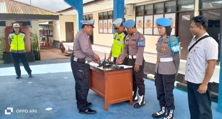 Selain itu juga dilakukan pemeriksaan kelengkapan dinas lain yakni alat komunukasi berupa HT yang di pegang personil satuan lantas.