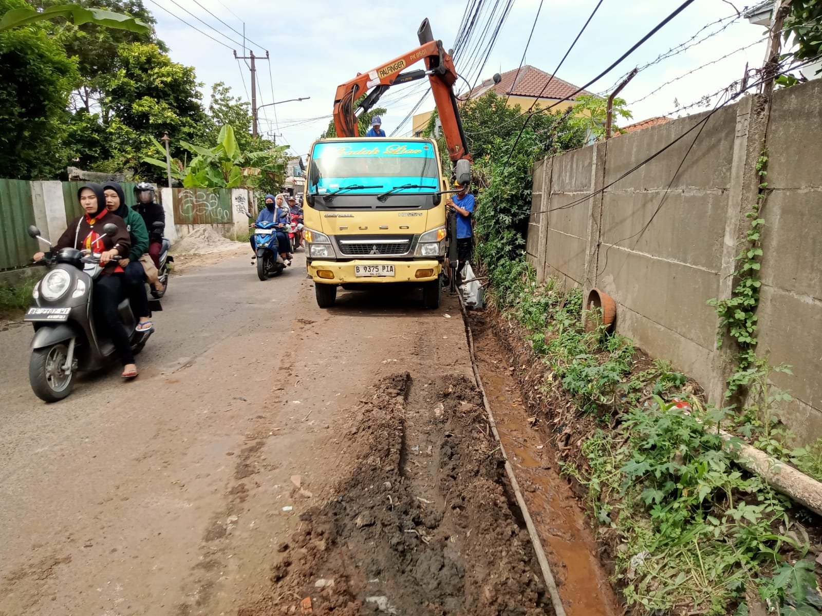 “Kalau hujan licin sekali, motor banyak yang jatuh,” keluh salah seorang warga yang ditemui di lokasi.