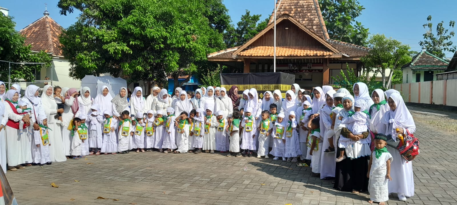 Pantauan dilapangan, semua anak laki-laki menggunakan pakaian Ihram, sehelai kain putih yang dililitkan pada badan dan bahu saja, layaknya jam’ah yang sedang menunaikan ibadah haji di Mekkah. Begitupun anak-anak perempuan, semuanya memakai gamis dan kerudung serba putih.