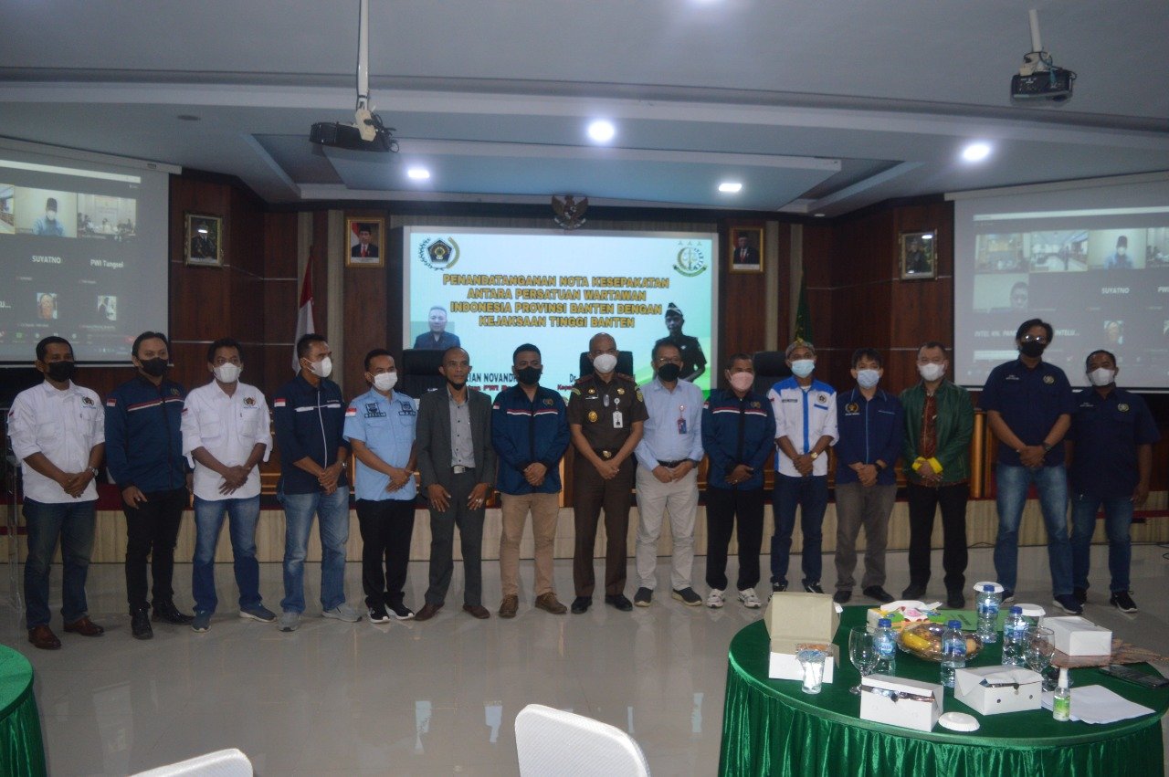 NASIONALXPOS.CO.ID, BANTEN – Guna meningkatkan sinergitas, Kejaksaan Tinggi (Kejati) Banten dan Persatuan Wartawan Indonesia (PWI) Banten melakukan penandatanganan nota kesapatan atau MoU di Aula Kejati Banten pada Kamis 20 Januari 2022.