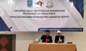 NASIONALXPOS.CO.ID,SERANG – Persatuan Wartawan Indonesia (PWI) Kabupaten Serang menggelar konferensi kerja sekaligus pemberian Penghargaan kepada Kejaksaan Negeri dan Bupati Serang di Hotel Pesona Krakatau, Kecamatan Anyer,, Kabupaten Serang, Jumat (9/12/2022).