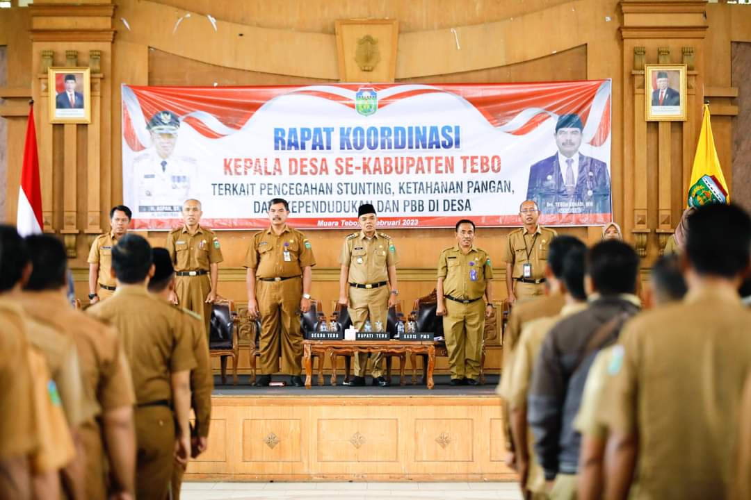 NASIONALXPOS.CO.ID, TEBO – Pj. Bupati Tebo H. Aspan S.T. menyampaikan pentingnya Pencegahan Stunting dan Ketahanan Pangan di Kabupaten Tebo saat membuka Rapat Koordinasi Kepala Desa Se- Kabupaten Tebo Terkait Pencegahan Stunting, Ketahanan Pangan, Data Kependudukan dan PBB di Desa, Aula Utama Kantor Bupati, Senin (06/02/2023).