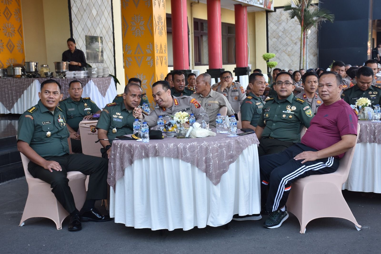 Pada saat tiba di Markas Polrestabes Palembang tersebut, Dandim 0418/Palembang hadir bersama, Katopdam II/Swj, Kaajendam II/Swj, Kakumdam II/Swj dan para Danramil Jajaran Kodim 0418/Palembang disambut langsung oleh Kapolrestabes Palembang Kombes Pol Harryo Sigihartono didampingi Wakapolrestabes Palembang dan para Kapolsek Jajaran Polrestabes Palembang.