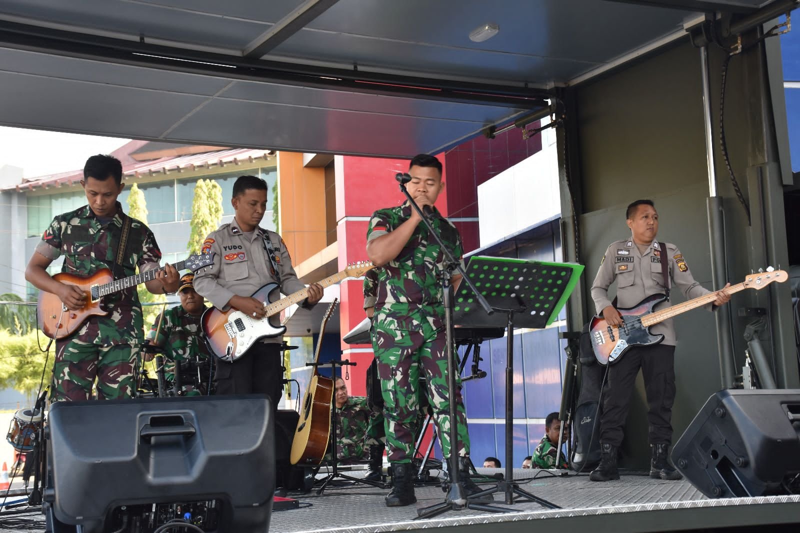 Acara syukuran ini, diramaikan oleh penampilan Band Ajendam ll/Swj pimpinan Kolonel Caj Hadi Suryono yang berkolaborasi dengan pemain band Polda Sumsel.