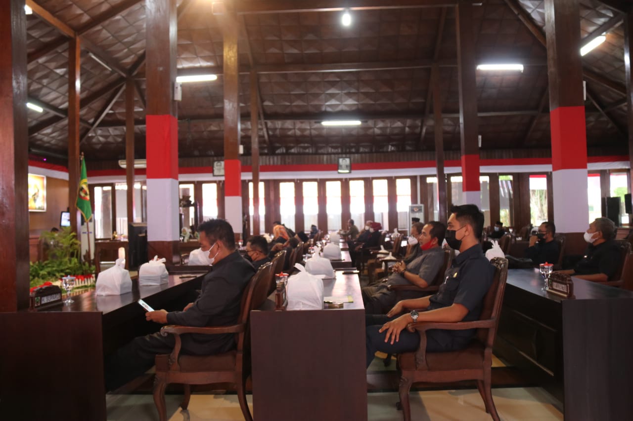 Rapat dipimpin Ketua DPRD Blora, HM. Dasum, dihadiri Wakil Ketua dan anggota DPRD, Forkopimda, Sekda, dan Kepala OPD terkait. (Hans)