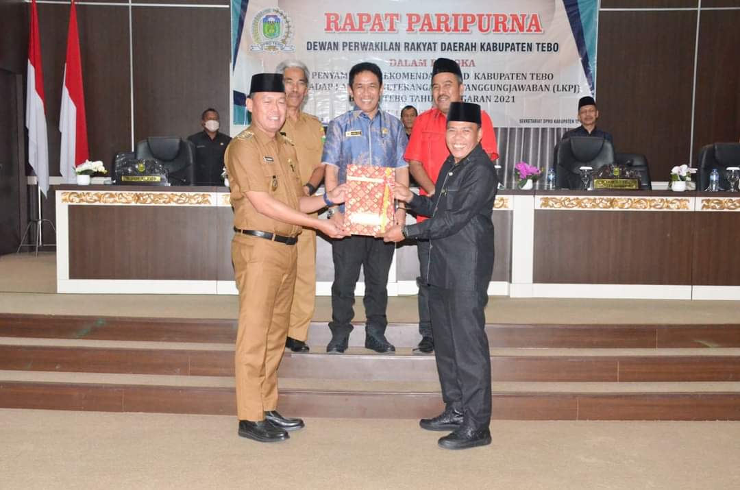 Dalam penyampaian rekomendasi tersebut, dari tujuh fraksi yang ada di DPRD Kabupaten Tebo seluruhnya dapat menerima LKPj Bupati Tebo TA 2021.