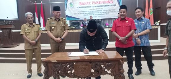 Acara yang dilaksanakan di Gedung Rapat Utama DPRD Tebo ini dihadiri oleh Ketua dan Pimpinan serta Anggota DPRD Tebo, Bupati dan Wabup Tebo, unsur Forkopimda, Kadis, Kabag, Kabid, Camat serta undangan lainnya.