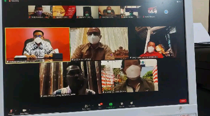 Rapat Virtual terkait dengan PPKM Level 4, bersama dengan Forkopimda, Pimpinan Perangkat Daerah, Camat dan Lurah, Minggu (25/07/2021) malam.