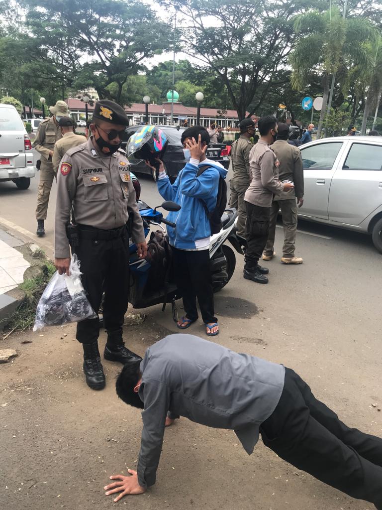 “Masih ada masyarakat yang didapati tidak memakai masker kemudian kami lakukan tindakan teguran dan tindakan sosial seperti push up,”tuturnya.