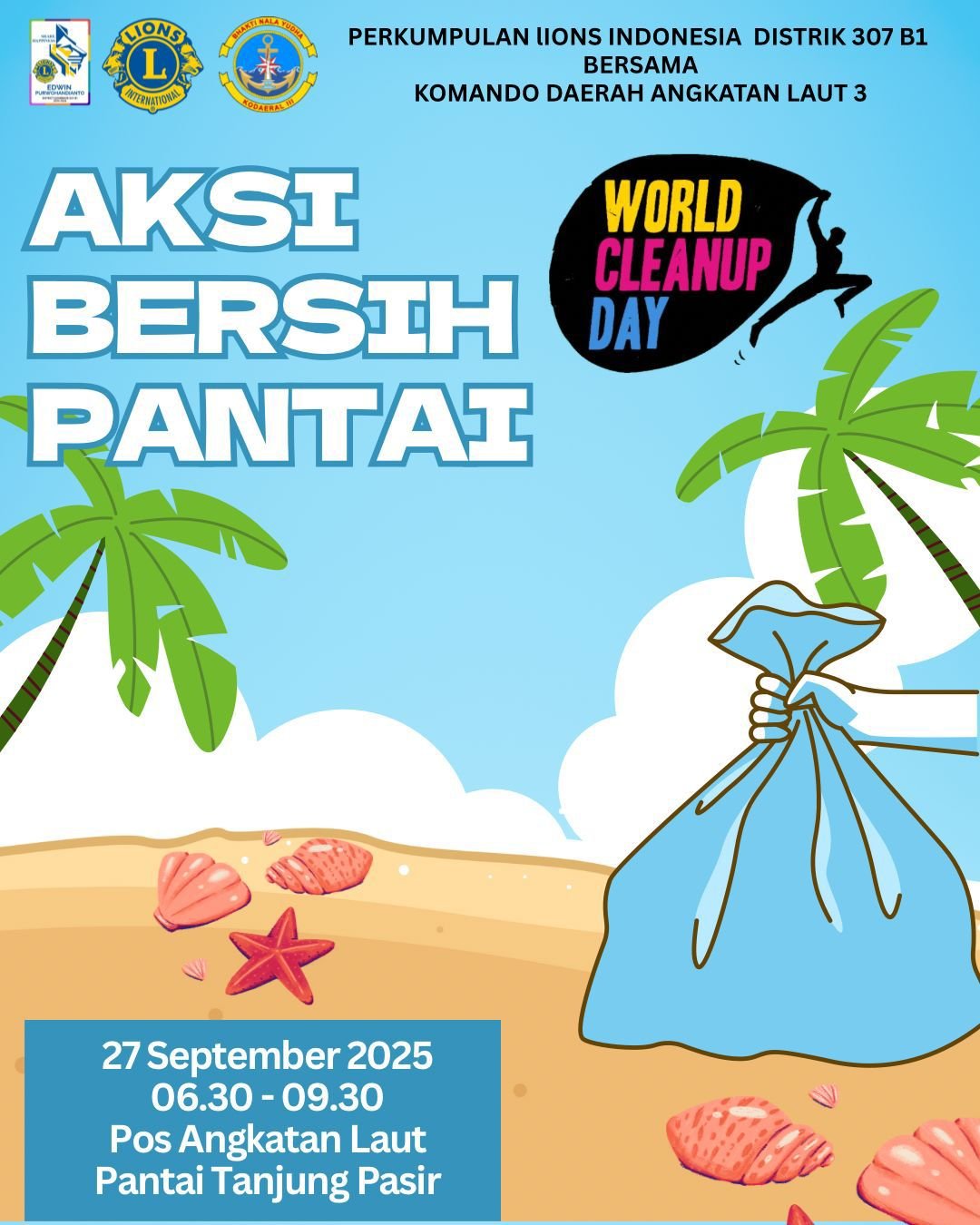 NASIONALXPOS.CO.ID, TANGERANG – Dalam rangka memperingati World Cleanup Day atau Hari Bersih-Bersih se-Dunia, Perkumpulan Lions Indonesia Distrik 307 B1 bekerja sama dengan Komando Daerah Angkatan Laut (Koarmada) III akan menggelar kegiatan sosial bertajuk Aksi Bersih Pantai.