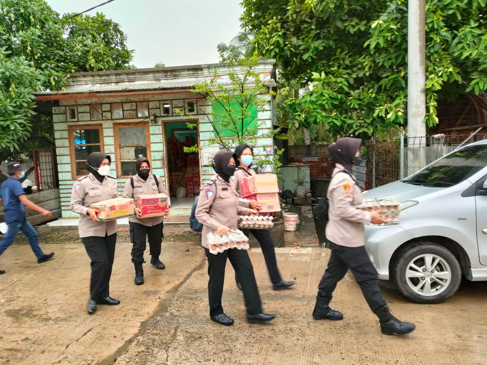 Polres Metro Tangerang Kota sejak kemarin belah mengirim ratusan Bungkus makanan siap saji untuk para korban banjir yang rumahnya terendam air.