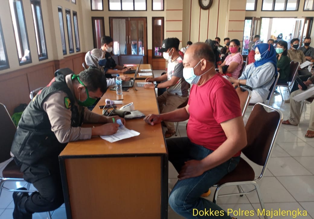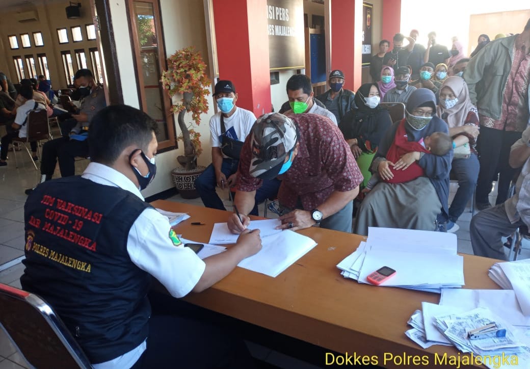 Kapolres Majalengka AKBP Syamsul Huda melalui Kabag SDM KOMPOL M.Gozali menuturkan, pihaknya melaksanakan vaksinasi setiap hari jam kerja untuk membantu pemerintah dalam menanggulangi penyebaran Covid-19.