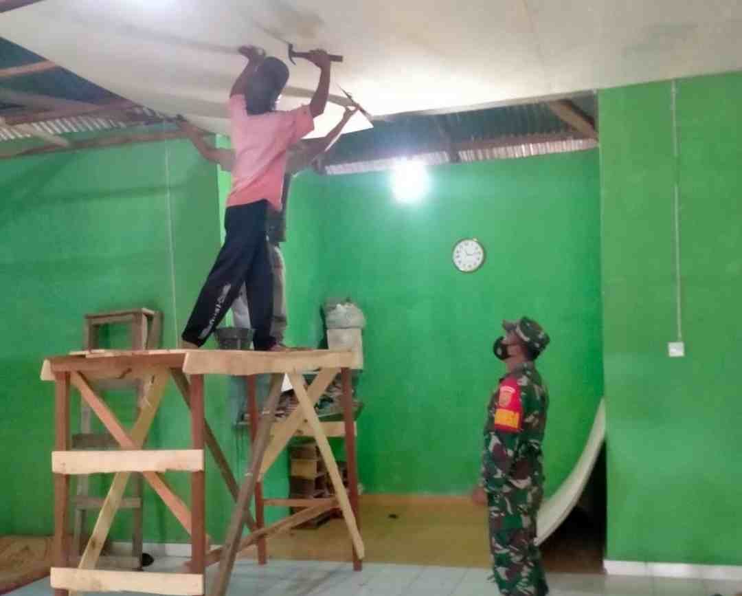 Dikatakannya, dalam pengerjaan pemasangan plafon itu ia dibantu warga setempat yang dengan cekatan mengerjakan pemasangan tersebut.