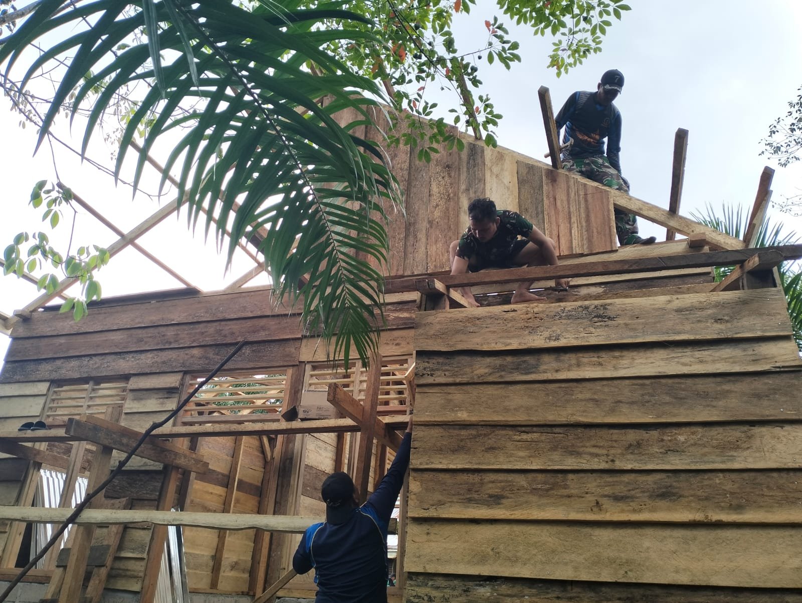 “Hari ini satgas TMMD sudah mengerjakan dinding tebeng layar, yang artinya tidak lama lagi bisa mengerjakan atap rumah,” ujar Kapten Inf Syaiful.