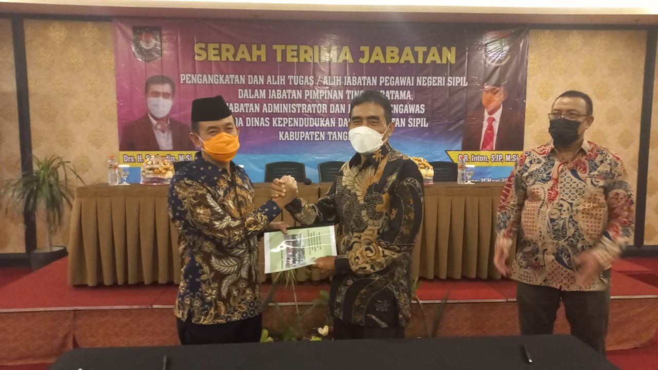 Dalam pelantikan tersebut, Drs. H. Syarifudin , M.Si yang sebelumnya menjabat sebagai kepala Kepala Dinas Kependudukan dan Pencatatan Sipil saat ini digantikan Cikwi R Inton.