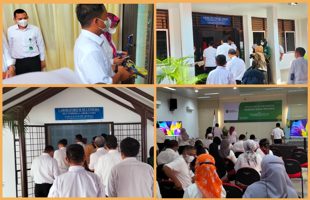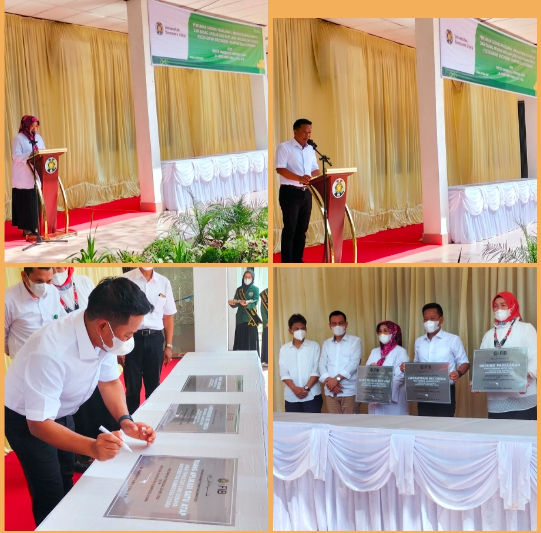 NASIONALXPOS.CO.ID, SUMATERA UTARA – Rektor USU Muryanto Amin meresmikan sekaligus 3 gedung untuk Fakultas Ilmu Budaya (FIB) Universitas Sumatera Utara (USU), diantaranya adalah Ruang Aplikasi Satu Atap (ASA), Gedung Pagelaran dan Gedung laboratorium Multimedia, Senin (30/05/2022) bertempat dihalaman Lingkungan Fakultas Ilmu Budaya.