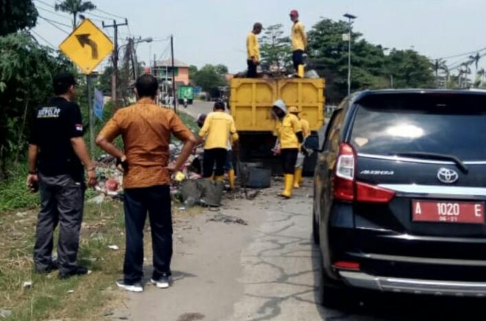 Dinas Lingkungan Hidup (DLH), bersama Camat Cikande H Moh Agus didampingi turun langsung dalam penanganan sampah liar di sepanjang jalan di wilayah Kecamatan Cikande.