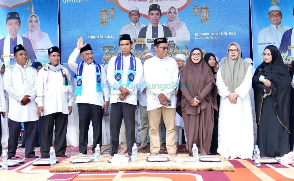 NASIONALXPOS.CO.ID, BUNGO – Ribuan jamaah tumpah ruah memadati halaman utama Universitas Muhammadiyah Muara Bungo (UMMUBA), Sabtu (27/7/2025), dalam acara Tabligh Akbar bersama Ustadz Prof. H. Abdul Somad, Lc., D.E.S.A., Ph.D.. Acara istimewa ini turut dihadiri langsung oleh Bupati Bungo, H. Dedy Putra, S.H., M.Kn, yang memberikan apresiasi tinggi terhadap kontribusi UMMUBA dalam membangun kualitas pendidikan dan dakwah Islam di Kabupaten Bungo.