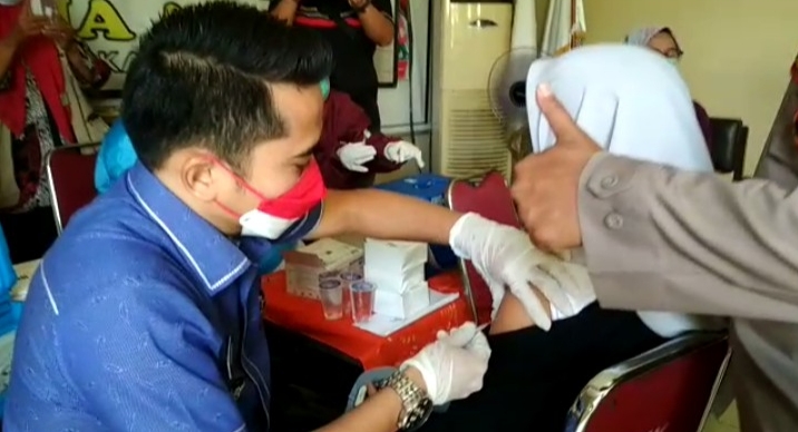 NASIONALXPOS.CO.ID, BEKASI – Bermodalkan besic tenaga kesehatan, seorang lurah di kabupaten Bekasi Jawa barat, terjun membantu petugas kesehatan melakukan vaksinasi pada warga yang datang untuk melakukan vaksinasi di Kelurahan Setia Asih tempatnya bertugas.
