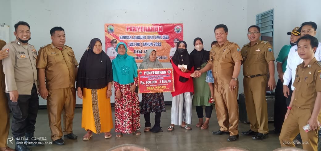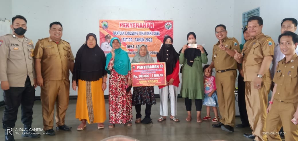 Acara penyerahan BLT-DD dilaksanakan di Aula kantor Desa Kecapi yang dihadiri langsung oleh Camat Kalianda, Zaidan SE., Kepala Desa Kecapi, Ridwansyah, Babinsa, Babinkamtibmas, Linmas, BPD, LPM, Pendamping Kecamatan, kasi Eko Bank, Kasi Pertanahan, Pendamping Desa, Tokoh pemuda, tokoh Masyarakat, Aparatur Desa serta Seluruh Masyarakat penerima BLT.