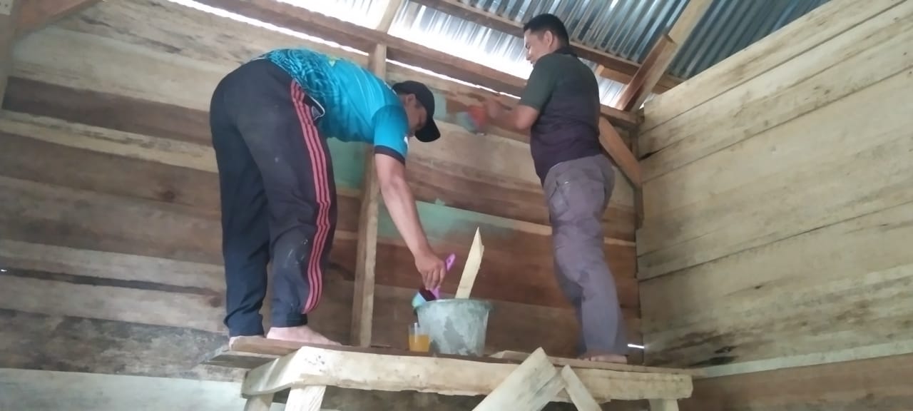Pantauan di lokasi TMMD ke-117, nampak Serda Wen Levi bersama anggota Satgas lainnya tengah mengerjakan pengecatan dinding rumah bagian dalam milik Edi Candra berwarna hijau, yang mana kini bangunannya sudah selesai, tinggal menyisakan pengerjaan pengecatan dinding dan finishing pembersihan sekitar rumah yang terus dilakukan oleh Satgas TMMD dan dibantu warga setempat.