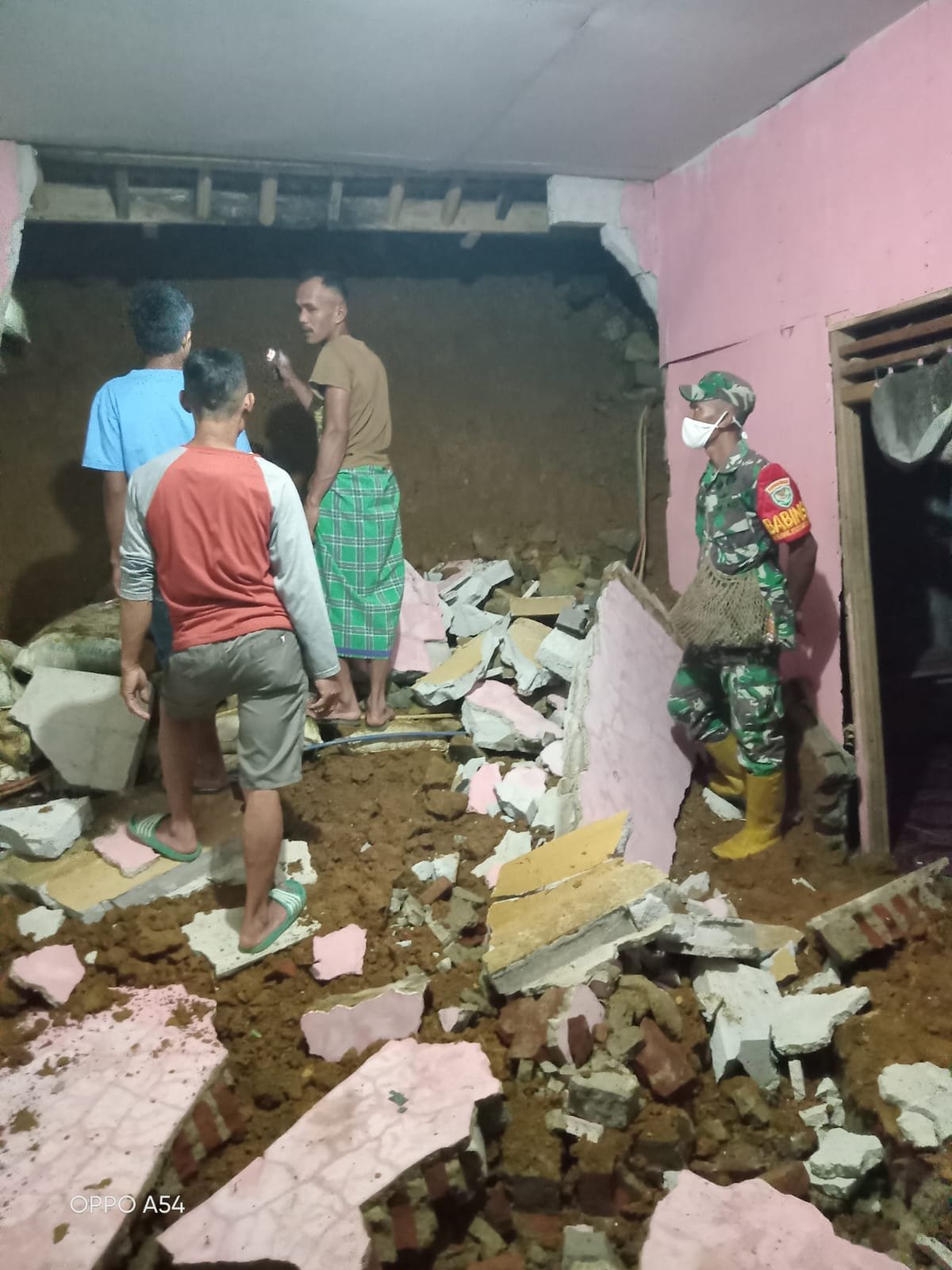 di duga kejadian ini akibat faktor alam, mengingat beberapa hari ini curah hujan begitu tinggi, semantara struktur tanah yang labil tidak kuat menahan derasnya air hujan, sehingga terjadi pergeseran tanah, mengakibatkan ambruknya rumah Pak sukri, beruntung dalam kejadian tersebut tidak menelan korban jiwa, hanya kerugian material saja, menurut perkiraan saya mencapai Rp. 20.Jt. Terangnya. Selasa ( 20/04/2022)