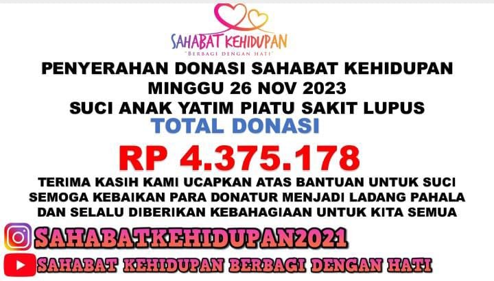 “Open donasi sudah kami lakukan dari tanggal 23 November s/d 24 November 2023, dari hasil donasi kami mendapatkan dana sebesar Rp.437.5178,- , saya ucapkan terimakasih kepada para donatur dan teman-teman saya yang tidak sempat saya sebutkan satu-persatu, “imbuh Gusti saat di hubungi via pesan singkat WhatsApp