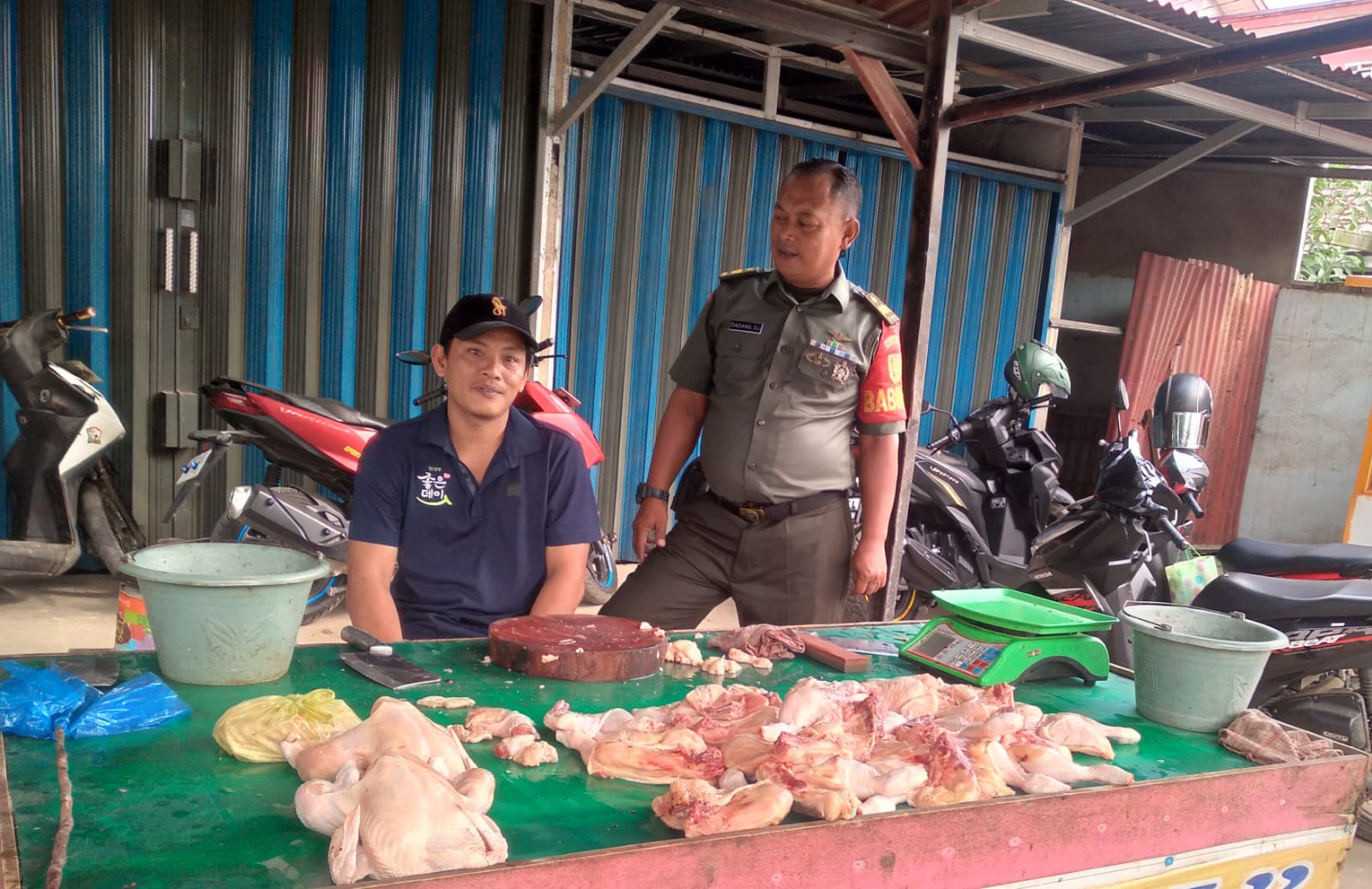 NASiONALXPOS.CO.ID, PALEMBANG – Babinsa Kelurahan Srimulya Koramil 418-08/Sako Peltu Dadang Djuanda, melaksanakan Komsos dengan pedagang ayam potong Bapak Bayu Susanto, Senin (5/6/2023).