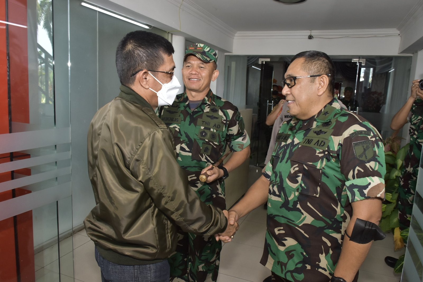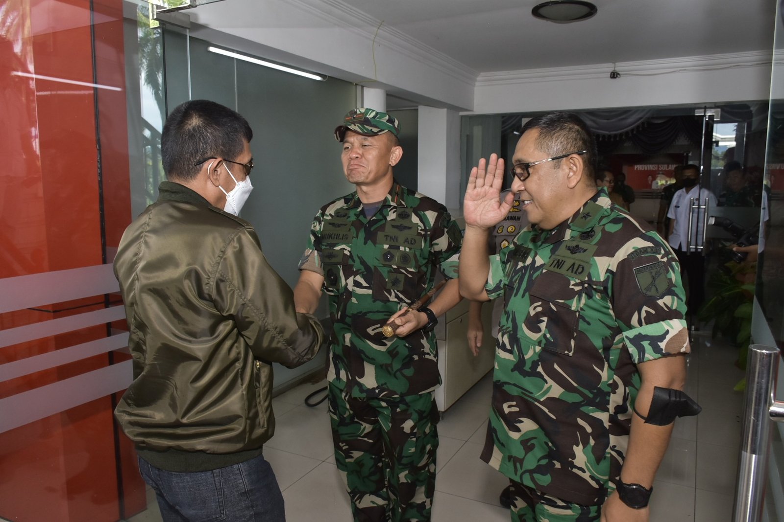 NASIONALXPOS.CO.ID,MANADO,-Plt. Deputi IV Bidkoor Hanneg Kementerian Koordinator Bidang Politik Hukum dan Keamanan Mayjen TNI Drs. Burlian Sjafei beserta rombongan antara lain Brigjen TNI Frengky E. Riupassa (Asdep IV) dan Kolonel Inf Rusman (Kabid Doktrin Pertahanan) dan Domaeld Putra Analis Polhukam disambut oleh Irdam XIII/Merdeka Brigjen TNI Denny Masengi saat mendarat di Bandara Sam Ratulangi, Senin (26/9/2022).