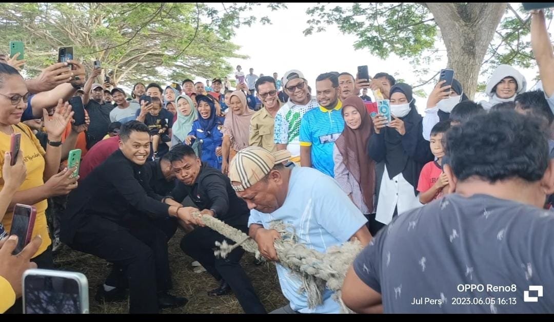NASIONALXPOS.CO.ID,HALSEL- Menyambut Hari ulang tahun (HUT) Kabupaten Halmahera Selatan ke 20, tahun 2023. Pemerintah Daerah Kabupaten Halmahera Selatan melaksanakan kegiatan perlombaan tarik tambang dipusatkan di Pantai mandawong Kecamatan Bacan Selatan. Senin (05/06/2023)