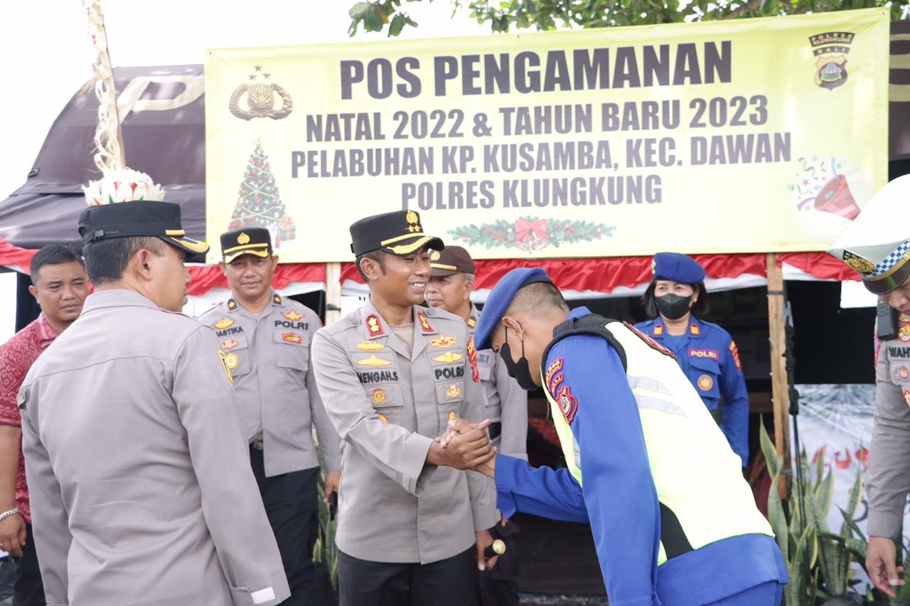Menyambut Operasi Lilin Agung 2022, Kapolres Klungkung AKBP. I Nengah Sadiarta, melaksanakan pengecekan di Pos Pengamanan (Pam) Natal dan Tahun Baru tepatnya di Pos Pengamanan Pelabuhan Kampung Kusamba, dan Pos Pengamanan Goa Lawah. Kamis, (22/12/2022).
