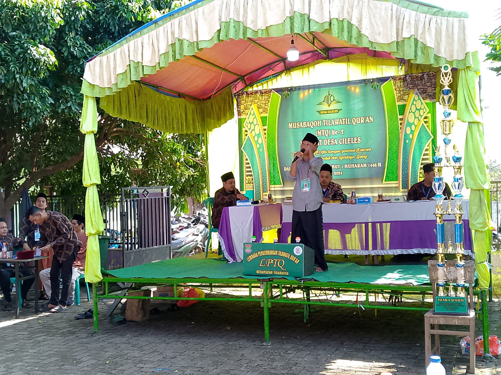 NASIONALXPOS.CO.ID, KABUPATEN TANGERANG – Menyambut dan memperingati tahun baru 1 Muharram 1446 Hijriyah, Pemerintah Desa Cileles, Kecamatan Tigaraksa, menggelar 5 kategori lomba acara, Lomba Azan tingkat anak anak dan Dewasa, MHQ , dan 3 tingkat Murotal, Minggu 30 Juni 2024, di halaman Kantor Desa Cileles,