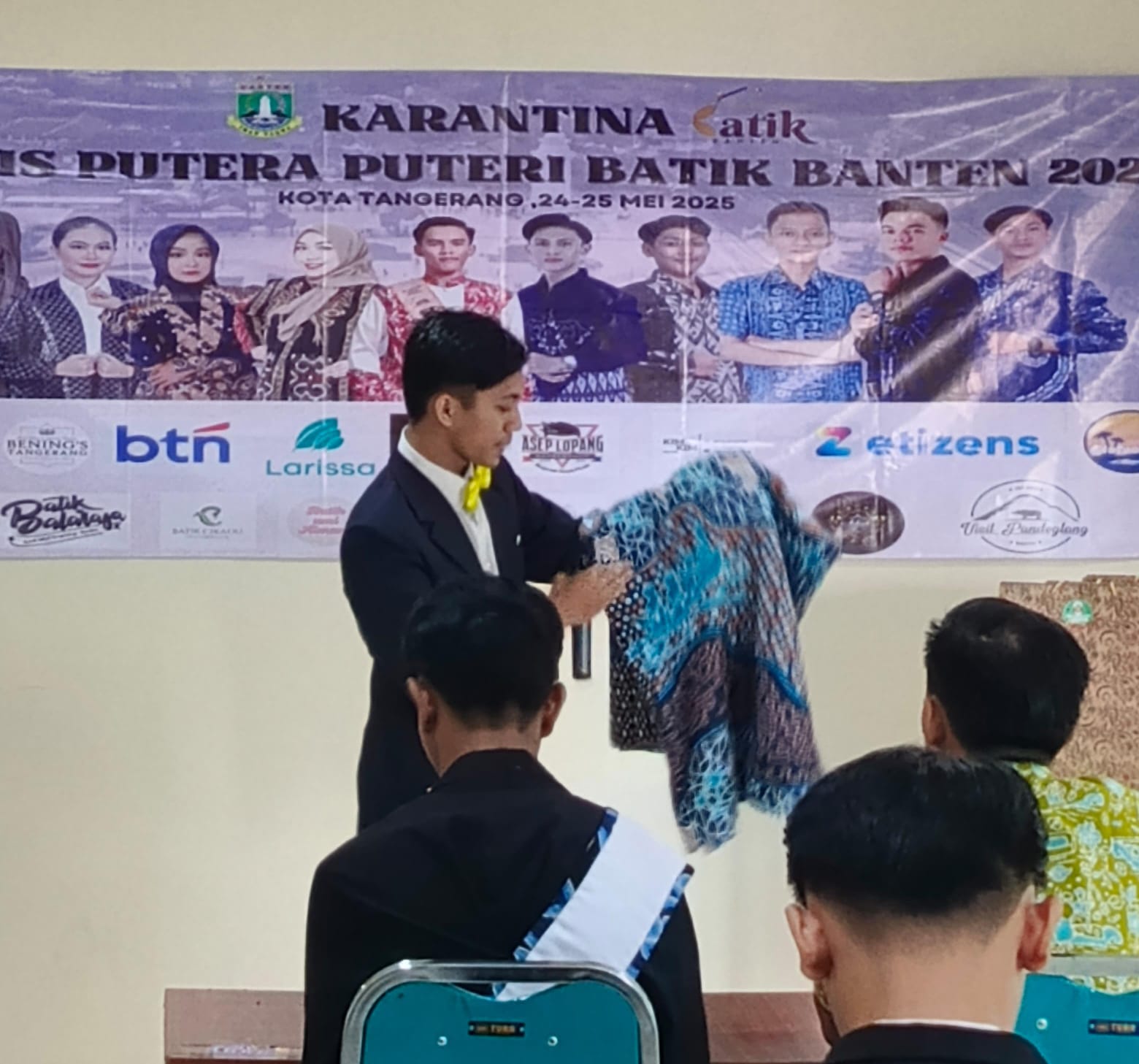 Tak hanya menjadi perwakilan daerah, Rafli tampil membanggakan dengan memperkenalkan Batik Pakuhaji, salah satu motif batik khas Kabupaten Tangerang yang kaya nilai budaya dan sejarah.