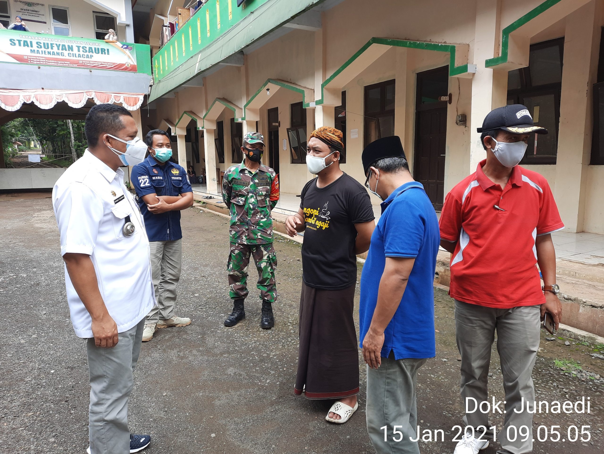 Camat Majenang Iskandar Zulkarnain, S.STP, M.Si saat ditemui wartawan di lokasi Ponpes STAIS menyampaikan, bahwa dirinya bersama tim media dan satgas Covid-19 sedang melakukan pemeriksaan kondisi para santri yang terpapar Covid-19.
