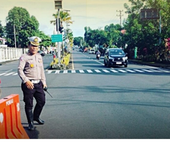 Personil Polresta Manado yang melaksanakan pengaturan Lalu Lintas guna mencegah terjadinya kemacetan dan terjadinya kecelakaan lalu lintas di pagi hari.