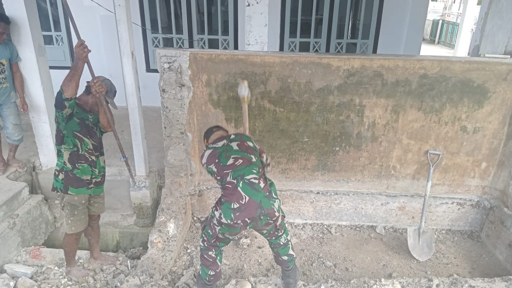 anggota yang tergabung dalam Satgas TMMD bersama Pori dan masyarakat tetap semangat untuk merenovasi masjid. Seperti pemasangan batu bata dan pembongkaran bilik tempat wudhu. Anggota yang ada dibantu masyarakat bahu membahu bergotong royong memperbaiki Temapat air wudhu tersebut